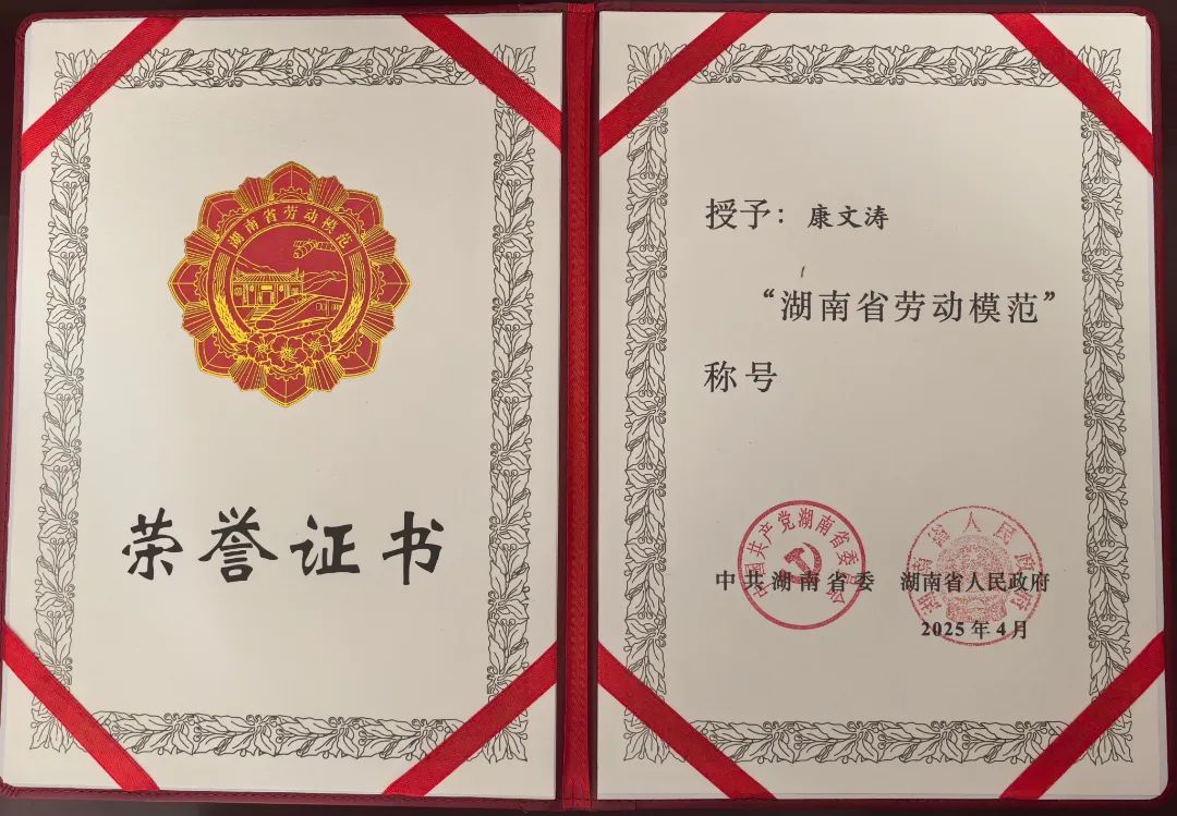 我司技術(shù)研發(fā)中心總監(jiān)、高級工程師康文濤獲評“湖南省勞動模范”稱號!